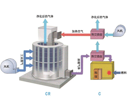把有機廢氣加熱到760℃以上,將有機廢氣氧化生成CO2和H2O,從而凈化廢氣,并回收分解時所釋出的熱量,以達到環(huán)保節(jié)能的雙重目的,是一種用于處理中高濃度揮發(fā)性有機廢氣的節(jié)能型環(huán)保裝置。